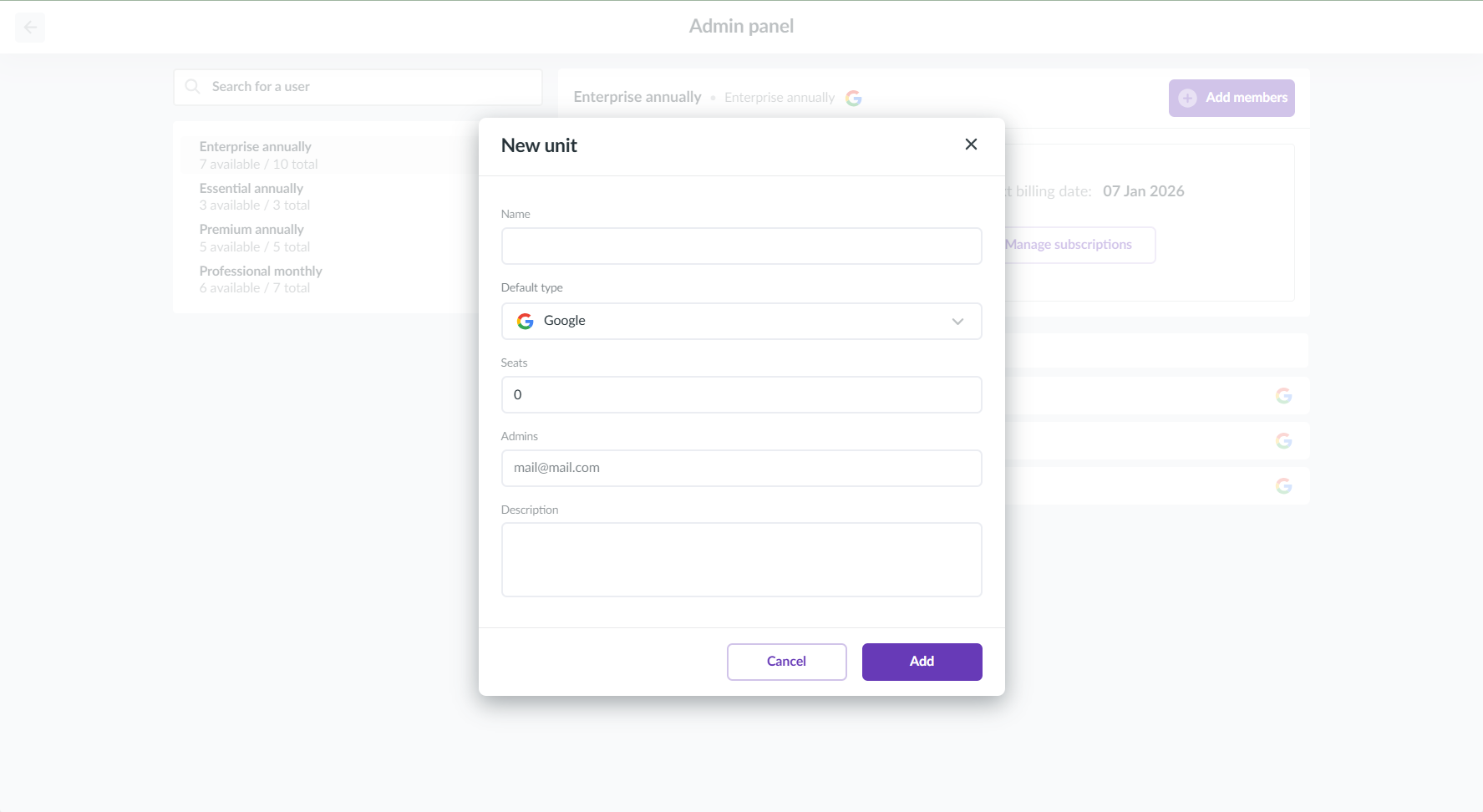 You may choose the default platform type for your subscription. Thus, all the new users added to the subscription will have the chosen platform type. To do it, please, click the three-dots icon and choose Edit unit.